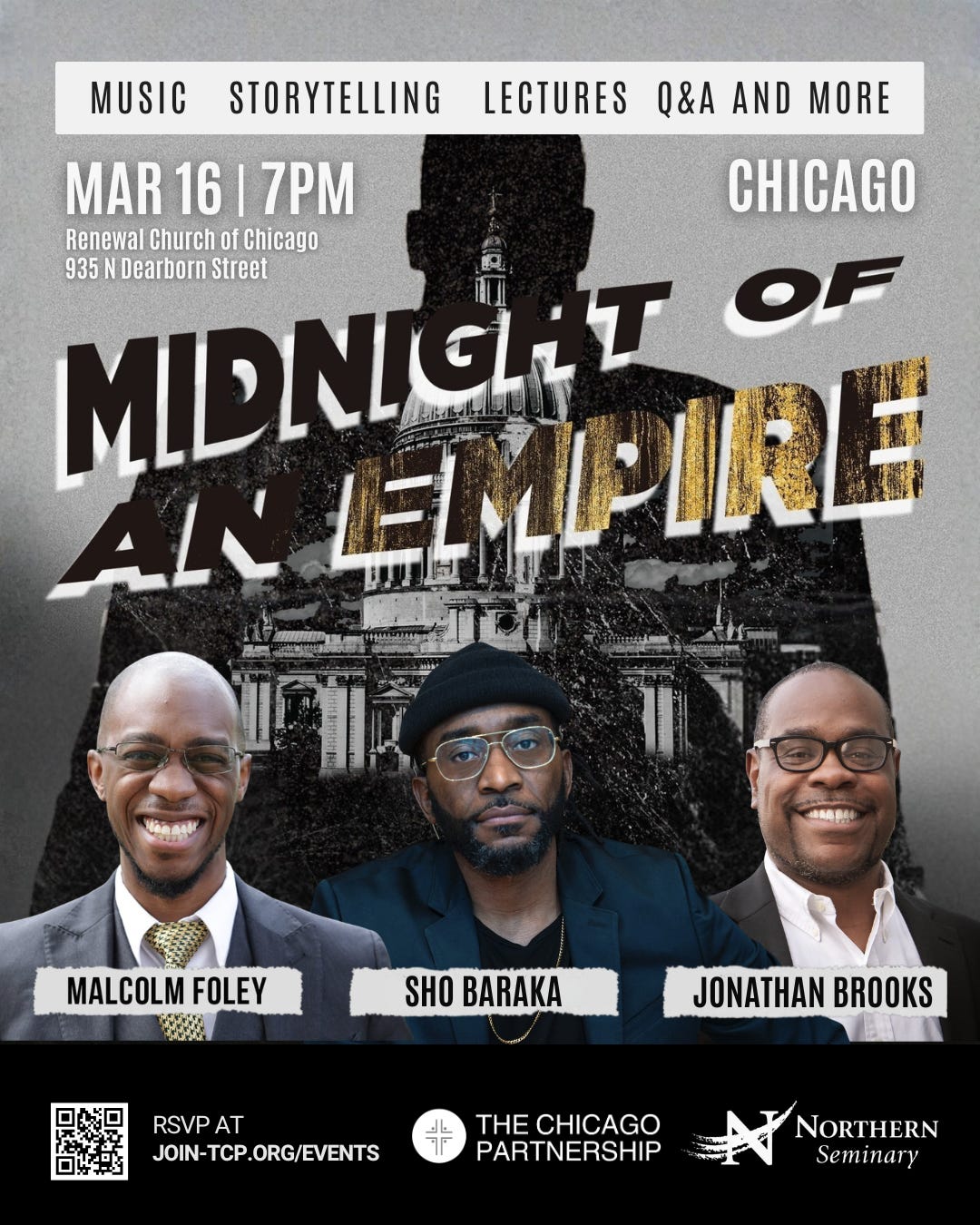 Midnight of an Empire with Sho Baraka and Malcolm Foley • Pastors and Faith Leaders Lakeside Chat • Job Openings • Chicagoland Collective Gathering • Jesse Jackson Memorial Service at House of Hope