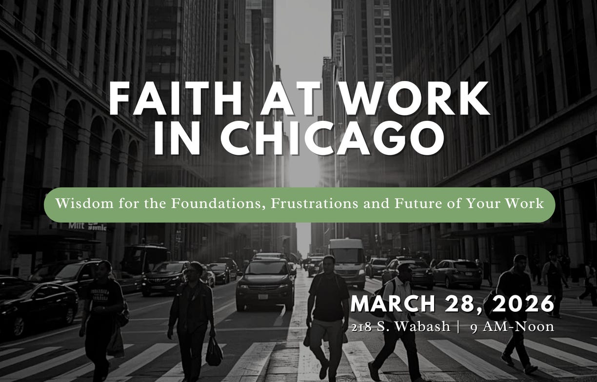 Join Faith & Work Chicago on Mar 28, 9am-noon, for a practical, encouraging morning where you’ll choose a track that fits your current work season, connect with peers and mentors, and leave equipped to approach your work with renewed purpose and hope. Learn more here.