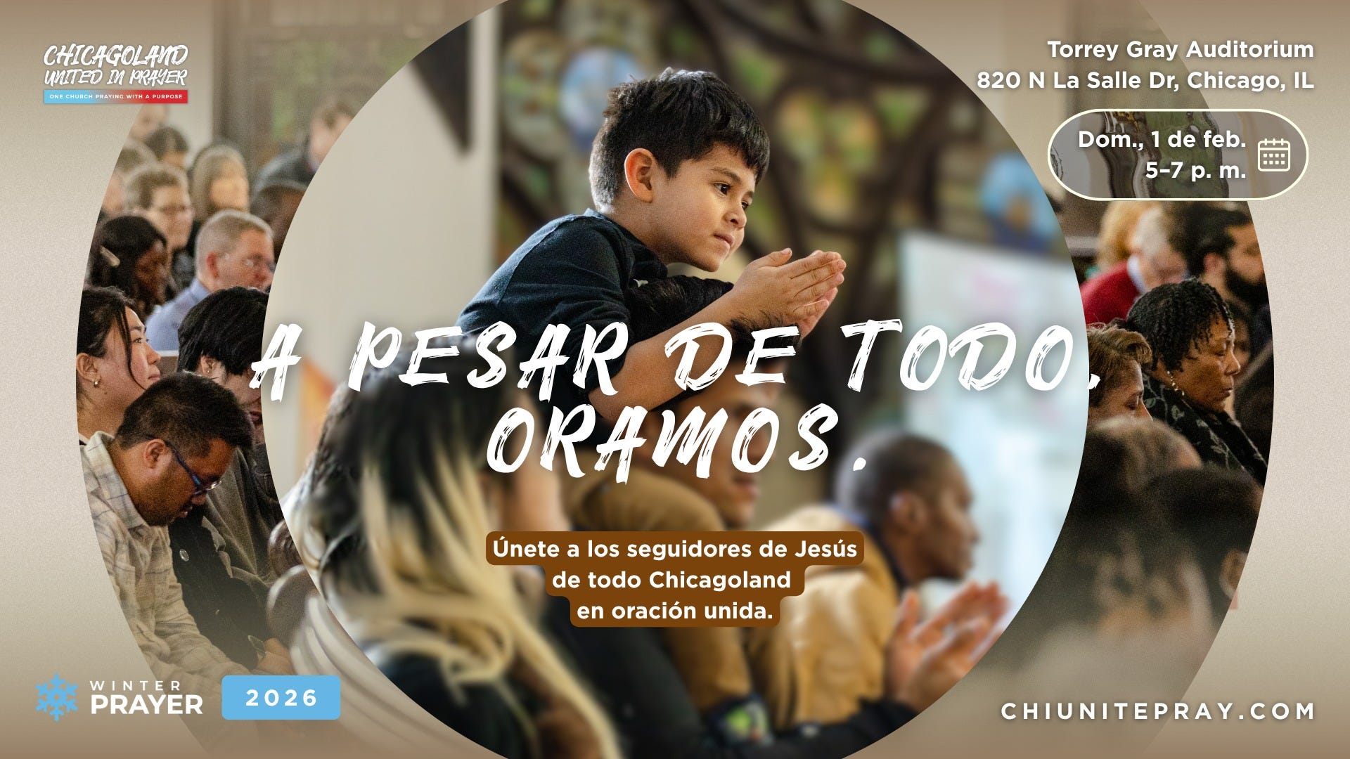 ¿Tu iglesia ya hizo planes para comenzar el Año Nuevo? Nos estamos asociando con Chicagoland United in Prayer para reunir a iglesias durante 21 días de oración, del 12 de enero al 1 de febrero, culminando con una reunión ciudadana el 1 de febrero. Compartiremos videos devocionales diarios con líderes locales que enseñarán del libro de Nehemías. Obtén más información sobre cómo participar en join-tcp.org/21days.